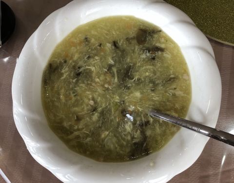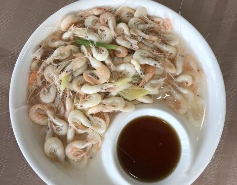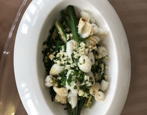 太湖旅游度假区的湖滨1号餐馆位置不错,但大部分临湖的玻璃墙外都有绳网,妨碍观景。之所以选这家是因为大众点评介绍为吴兴区江浙菜热门榜第一名。菜品虽不惊艳,但味道也算不错,大部分菜味道比较淡,问服务员要的辣椒酱倒是很辣够味。没有菜单,菜的名字不一定准确,点了太湖白虾、银鱼丝蒸蛋、鱿鱼秋葵、杏鲍菇炒肉、莼菜羹。