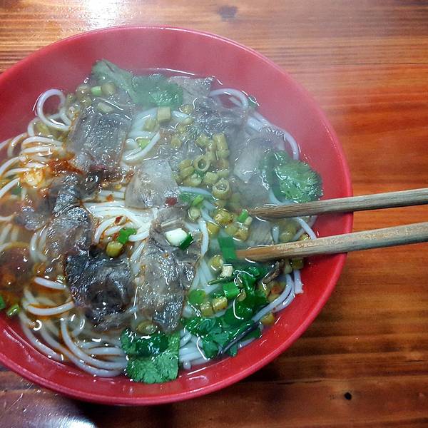 听到有人在洗衣服,走上前去打个招呼,正好洗衣服的大姐是九妹牛肉粉的老板,到她家里坐下吃个牛肉粉等天亮