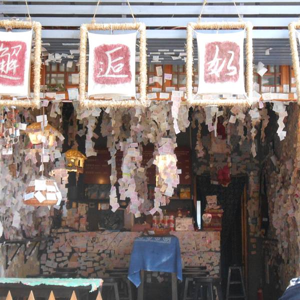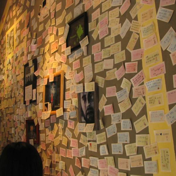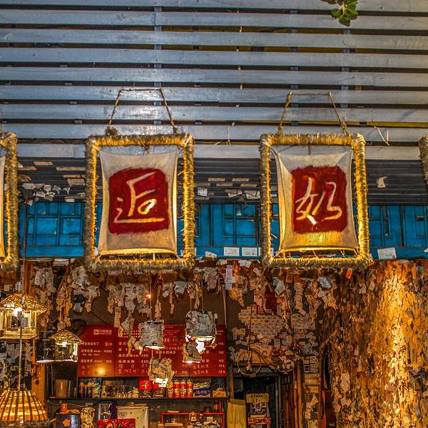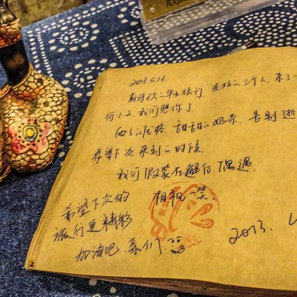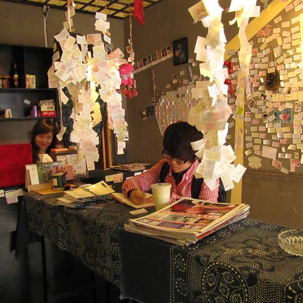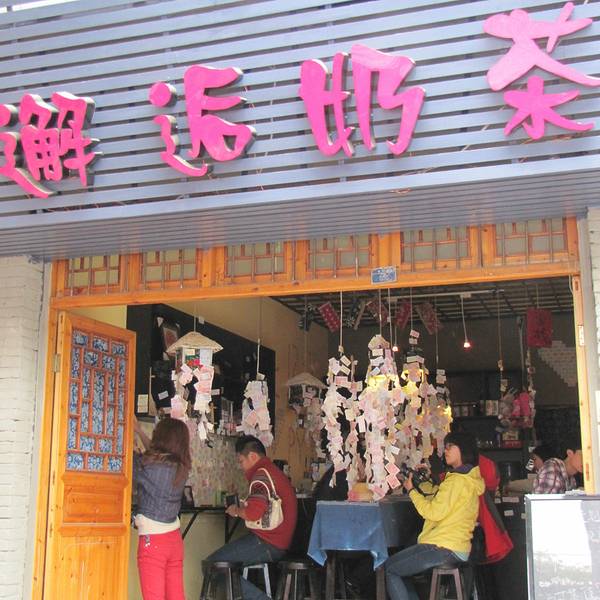 人气很旺的一家店铺,最具特色的便是在小店的墙上贴满了客人的便签及各地往来的车票。玫瑰花奶茶用三花奶调配的,味道很好,15元一杯。喝着奶茶望着沱江,惬意;老板给你讲故事,聊聊天,很放松。