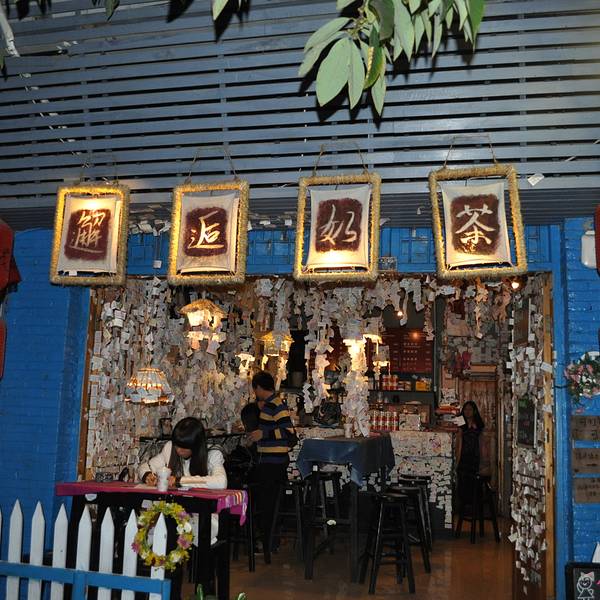 在网上出镜率特高的一家奶茶店,不过我们俩个对于进去喝东西的兴趣不大,只是到门前晃一下!