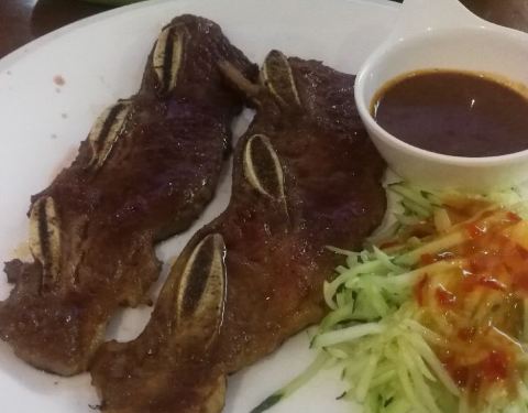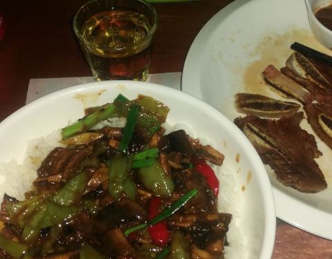 溢源香西餐馆在霞山步行街上,门面不大,里面较大,有两层楼,生意不错基本全满,翻台频繁,主要是周边居民,全家来的也有。有西式牛排,沙拉,意面,海鲜盖浇饭,水果饮品等等,点了美式牛仔骨,黑胡椒酱的,要的是7成熟,结果煎老了,影响吃口,味道不错。海鲜盖浇饭量大一人吃的饱饱的,总体感觉物有所值。