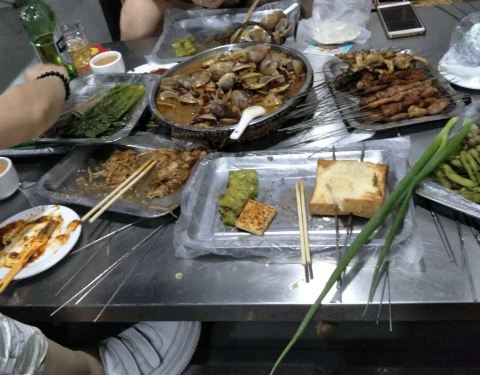 推荐花蛤肥蛤还有土豆虾,非常好吃,最近两三个月去了不下五次了,烤串味道也可以,每天人都挺多。