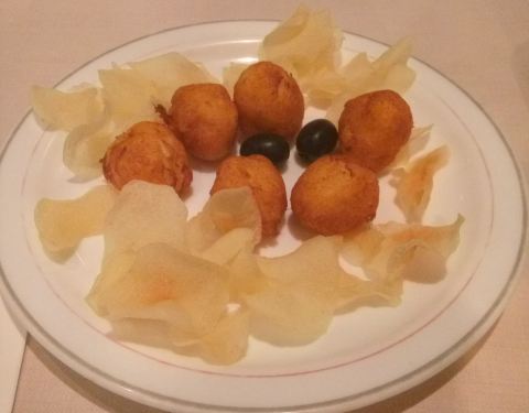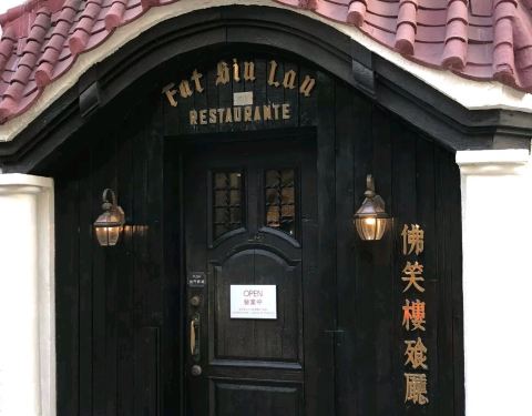 据说佛笑楼是澳门最古老的餐厅,跟着百度地图加上当地人的指点我找到了。话说当地人的指点灰常重要,因为这家店的门面也实在太低调,在福隆新街的一个路口转角上(好像那条交叉的小路叫福隆巷),但是店门居然都...据说佛笑楼是澳门最古老的餐厅,跟着百度地图加上当地人的指点我找到了。话说当地人的指点灰常重要,因为这家店的门面也实在太低调,在福隆新街的一个路口转角上(好像那条交叉的小路叫福隆巷),但是店门居然都是关着的,店招又在二楼,所以像我这种走路只平视前方的近视眼,来回几遍都没发现。后来还是当地人告诉,你抬头看呢,那个大招牌!这家应该是老店,推门进去里面的环境让人颇有点意外的惊喜。一楼算是大堂吧,二楼可能有包厢,但我没有上去看。一楼的顾客相当少,我去的时候还有一家刚用餐后在结账,之后一直到我用餐完毕都是独享的待遇。因为只有一个人,所以服务员建议下点了葡国菜特色的马介休球和该店的招牌石岐烧乳鸽。价格自然是不菲的,这两样加上服务费就295澳门币了。乳鸽真的很推荐,仅仅刚上来时的香气四溢就让人垂涎三尺食指大动了,入口味道很赞,皮略脆伴有入味的烧汁,鸽子本身肉质挺厚实,鸽肉本身的香味和外皮调料的味道融合的恰到好处。马介休球我是第一次吃,刚开始以为是土豆泥球,后来吃到里面其实是有鱼肉纤维的,一盘就6只小小的,当个小点心还不错。对于我这个大胃王来说,两样是肯定吃不饱的,但尝尝鲜也很满足了,毕竟价格有点让人心疼钱包,人多的话,可以多分享几样就更好了。