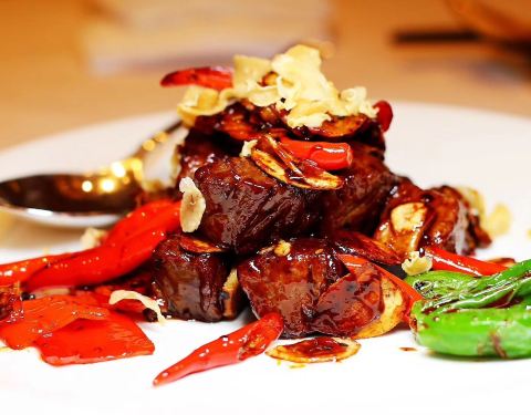 例汤是猪肚银杏,脆皮鸡的皮咬起来咔嚓的声音都有,吃不完肉我就专挑皮吃完它;黑脸猪叉烧分量太大了我们实在干不动,口感还不错,就是甜味儿多了一点;虾饺很多人推荐,虽然他们家也不错,我吃过太多好的米其林所以这家感受也就不那么明显;蒜香牛柳,采用好的雪花牛肉,在我们的要求下,两道热菜选择了加辣,里面可有青椒和小米辣,一口小米辣混合牛肉口味巴适得板,既有了粤菜的香浓,又多了我们喜欢的辣度,非常协调,很快抢光;杨枝甘露很浓郁。