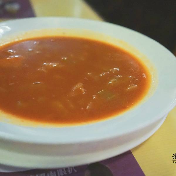 番茄牛尾汤,汤汁的味道很浓郁,有一点点偏酸,但也是能够接受的范围。作为开胃汤来说,还是很不错的。