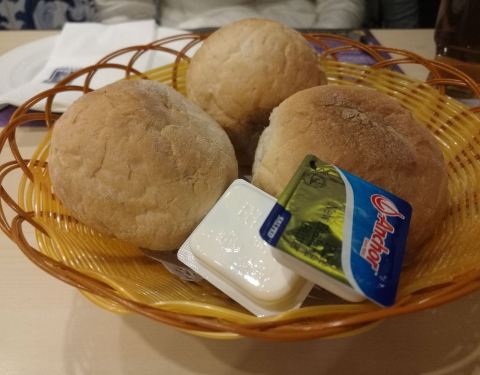 两人点的葡国鸡牛尾和生菜一共280港币,每桌会送小面包,菜的味道不错,性价比低了。