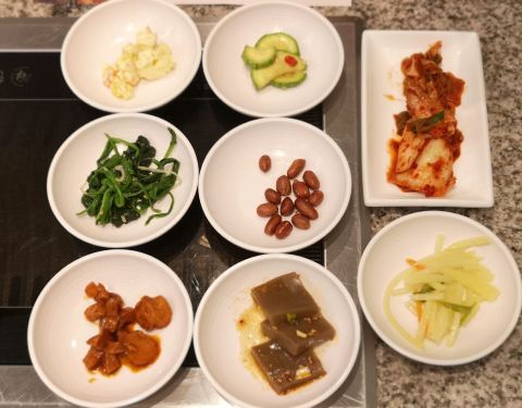 乱入一个新苗买的酸奶~ 纯纯的比较好喝。餐前小菜想吃海鲜煎饼所以来了这家~ 嗯……但是海鲜煎饼的海鲜不是很多,但估计比较正宗。性价比不是太高