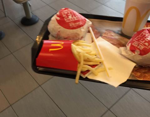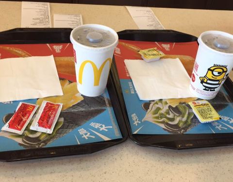 今天带着爸妈一起去吃小黄人套餐。妈妈从来没吃过她比较喜欢吃薯条,觉得汉堡的面包面有些发粘有点吃不惯,比较喜欢吃薯条还有麦辣鸡翅。爸爸一个人吃了两个汉堡才吃饱,他饭量大。不过总体还是非常满意的今天下雨懒得做饭,正好去麦当劳。