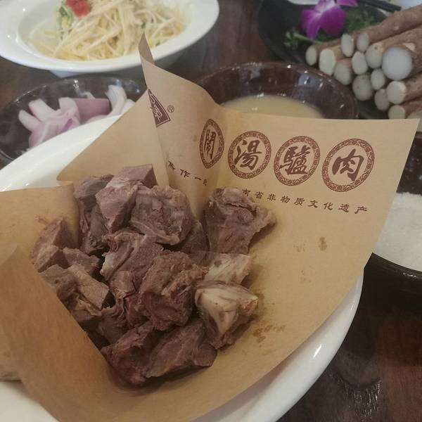 ...是特色菜驴肉,所谓闹汤驴肉,就是锅里的汤不停的滚,味道还可以,但最好还是烩面,烩面味道是真不错