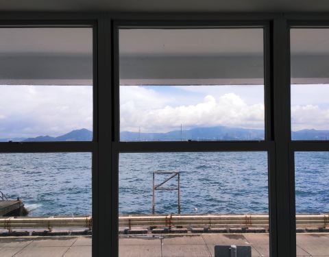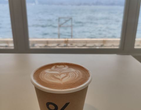 香港接连的开了好几家的Arabica咖啡,但是能够看到海景的只有这一家,这是西环热门的打卡点。刚进去的时候感觉非常的狭小,虽然有着大大的落地玻璃窗,靠近窗户的吧台只可以坐几个人而已,但其实楼上还有一层,就宽敞多了。但是更多的人是在店里面买了咖啡打包出去,因为外面就是香港的大海。可以看到前往南丫岛、长洲岛、还有澳门的船只,在这个海域不停的穿梭。