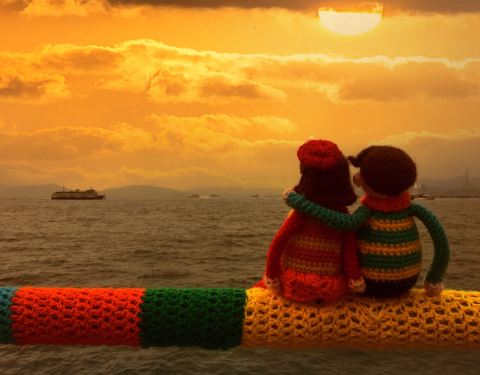 这家网红咖啡离西环的大海隔了一条马路,店里的座位也不多,所以最好的方式是买了咖啡带走,在海边边走边喝。走两步就是中西区海滨长廊西环段,游客很少。在这边幸运的看到了栏杆上的毛线情侣娃娃,香港的织女可真浪漫啊。
