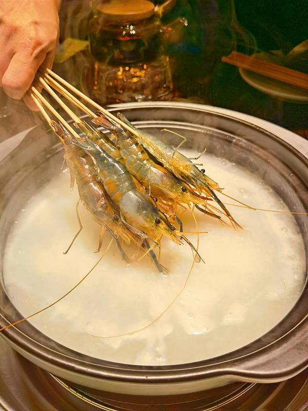 🐠这里的海鲜新鲜生猛,用来做粥底火锅是最好不过了,罗氏虾、鲍鱼、白贝、老虎斑和生蚝都是心头好,把这些海鲜分别依次放到滚烫的粥水里,调好时间,不能过长又不能过短,每种食材都有一个最佳的时长,到点了就捞起食用,味道鲜美无比,所有的精华都渗透到粥底中,最后,那锅粥底便成了最富营养的美食。
