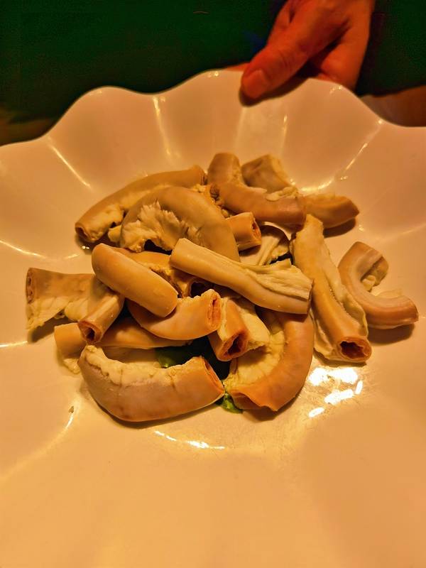牛展跟牛骨髓,两样东西都是大锅菜的最爱,所以直接就点了,加起来大概100左右吧,价钱会比较贵,不过这边的牛展的确是很好吃的,牛骨髓看起来也是特别的精致,虽然分量不多。
