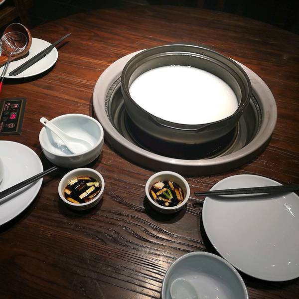 涮好的菜吃起来没有米粥的浓稠感,比一般火锅更滑一些,吃了菜,喝了粥,没有吃完火锅的那种油腻燥热。值得推荐。