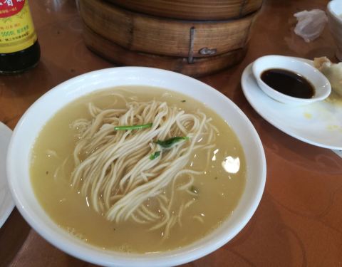 盐城人气特色早餐,有点小失望。鱼汤面有点豆油的味道(有点不习惯)蟹黄包很赞,蒸饺有点腻