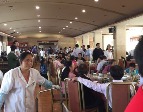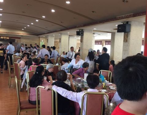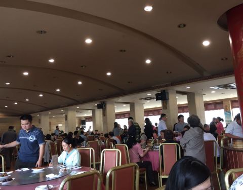 2016年国庆假期期间去的,到了盐城就一定要去体验一下当地有名气的洪祥大酒店早茶!10/4日早上8点到的酒楼,酒楼门口站满了等位子的客人!问了服务员才知道,得自己找桌子然后一直站在这桌边上等!跑到大堂一看这个场面,仿佛是穿越回到了80年代…回到了我们孩童时代爹妈带着我们上馆子等位子的场景……苏北盐城呀!现在是什么年代了?你只要在门口放一个取号机器,安排一个服务员就可以避免这种场景出现……再说吃的点心了…馒头超大…蒸饺也是大号的…拜托洪祥大酒店的师傅们…学习一下广东人的早茶吧……现在的人胃口已经没有当年大了……这么大份的食品吃不了是浪费呀……改变一下思路,与时俱进吧!有想体验一下80年代初期感觉的亲,真是可以考虑一次穿越游哦!