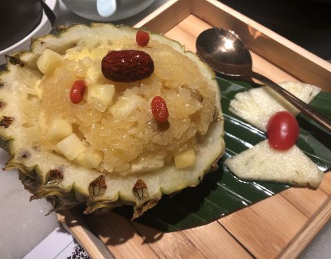 云海肴,做云南菜的连锁店。这家位于双楠伊藤店。 招牌菜,汽锅鸡,号称不用一滴水,汤鲜味美,鸡肉也不柴。 黄金爆浆豆腐,像是油炸豆腐,香。 粒粒香甜菠萝饭,糯米做的,酸酸甜甜很是爽口。 糖腿破酥包,用云...
