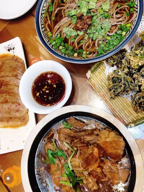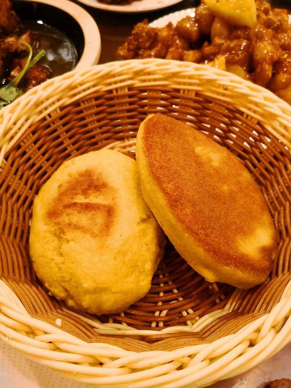 传世小排78元咸香适宜,肉烂脱骨非常不错,也是招牌菜。热切丸子24元味道还不错,可能有的地方所说的焖子就是这种吧?大碗饸烙12元对于我们来说也比较新鲜,就要了一碗三个人分吃,不然一碗下肚别的东西就吃不下啦。鱼香茄子26元味道很好,软烂味浓茄味十足,搭配五常米饭特别合适。老妈妈菜丸子28元比较鲜美的口感,外酥里嫩菜鲜,就是没吃出来放的啥菜。3元一个的枣香玉米饼热乎乎的感觉是现烙的,既有枣香又有玉米香,后来禁不住在添加米饭的时候又要了一个玉米饼。
