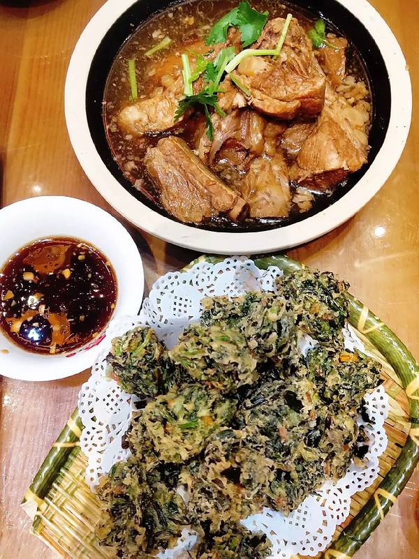 - 排骨,也就那么回事,推荐的什么窝鱼又贵又不好吃,灰灰菜还不错,跟服务员要什么东西只有三个字:自己拿