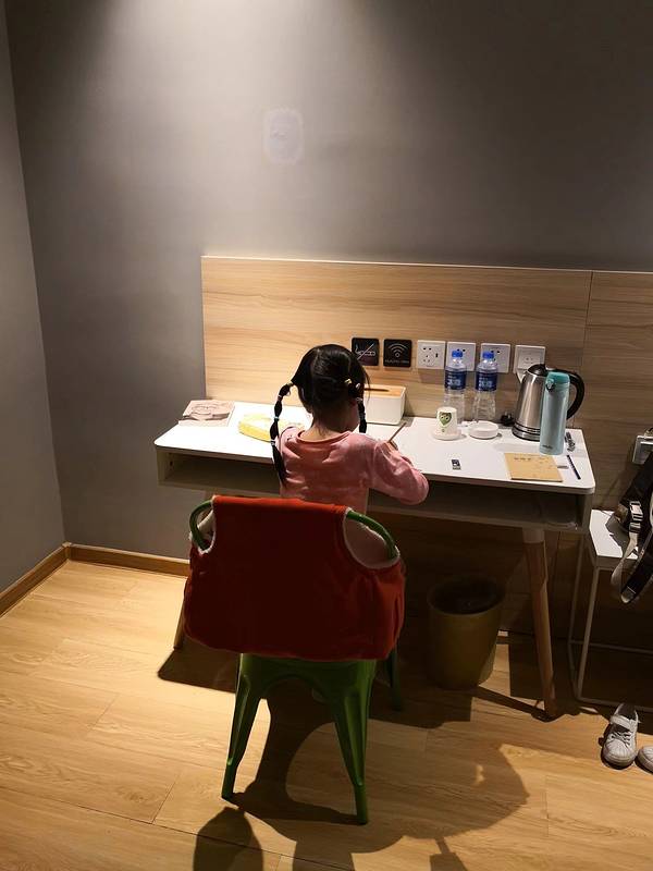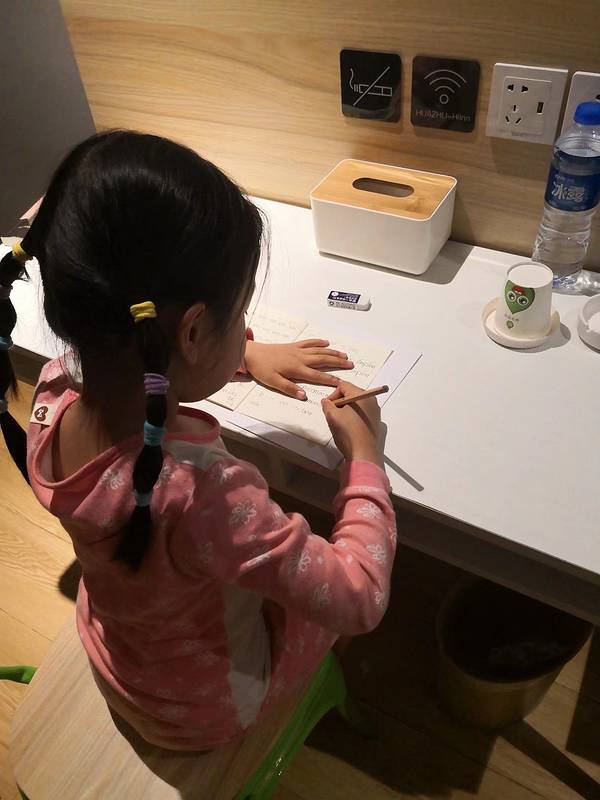 菠萝桂花鸡球竟然是辣菜!!晚饭之后,回到酒店,哲哲还要写作业哈。