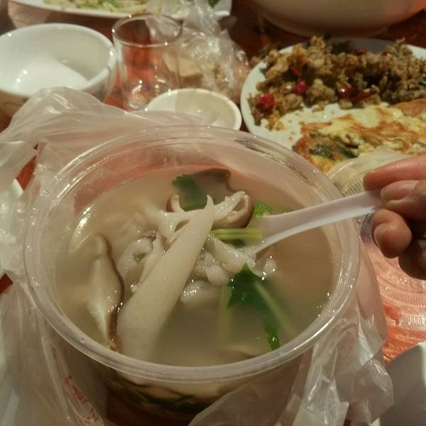 家常海味汤, 【口味】还可以, 【海蛎饼,好吃一点,它俩搭配一起吃还可以。 【服务】太普通了,都是老年人,不要要求服务了。环境】小,挤。人多。 2018-08-27 22:36来自携程 网友
