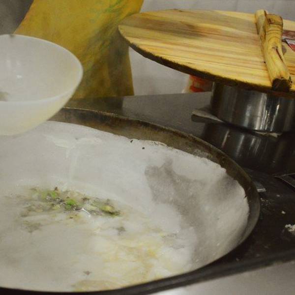- 从前福州人的早餐,先用萝卜在锅边擦一遍,然后浇上一层米糊,盖上锅盖十几秒,打开后,加水,把锅边...
