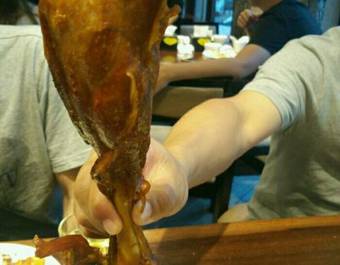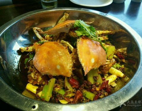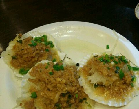 久负盛名,每次秦皇岛必去吃的,真心好吃。在当地也很出名,生意很好。 那天去才16:30,人不多,只有2-3桌,厨房也只有一个厨师在烧菜,他们晚上是17点开始正式营业。 点菜是实物,明档的形式,一目了然,有的海鲜是称重的 菜色好多,每个都想吃 1.椒盐皮皮虾,它是把整只虾切断,油炸撒上椒盐,吃起来一点也不油,很香,很入味,越搅越有味道,连皮都可以吃下去 2.香辣螃蟹,具体名字忘记了,有点小辣小麻,很入味,肉很饱满,很香,低料炒的很香 3.海皮,称重量的,两斤没几只,水煮的,超大的壳里面只有很小的一块肉,有点惺,这个不是很好吃 4.碳烤羊腿,28元一根,这个强烈推荐,超级大的一根,还有很多的肉和筋,真心好吃,一点也没有羊擅味,肉很嫩,筋很有较劲,外皮的肉有点焦焦的,因为是碳烤,所以还有一点点的苦味,但是非常好吃,男生配上一瓶啤酒,吃的那叫一个嗨 5. 蒜蓉粉丝扇贝,必点,人手一个,扇贝很肥,非常美味 6.有一个什么海螺的,名字不记得了,高汤水煮,很鲜 7.最后点了一份点心,香育球,名字有不记得了,没办法,偶只负责吃,点菜的活让别人去做了,还行,中规中矩的味道,应该是半成品的,每家店的味道都一样 8.吃海鲜怎么少的了啤酒 总体味道很好,性价比还不错,服务也ok 总之有机会还会去吃的