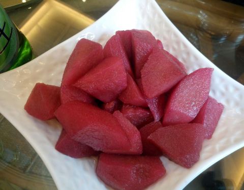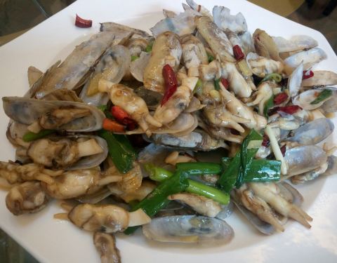 剁椒蒸带子味道鲜美,烤韩国生蚝忘了拍照,味道也很鲜,就是要22元一个,小贵!榴莲酥很香甜,鱼肚汤一般。葱烧海参用的是生鲜的海参,没想到它是薄脆片的,以前吃的都是发过的干海参,还真的是不一样啊。
