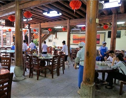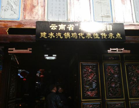 古色古香的饭店里因汽锅鸡而远近闻名。