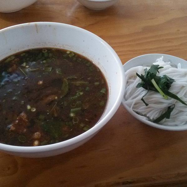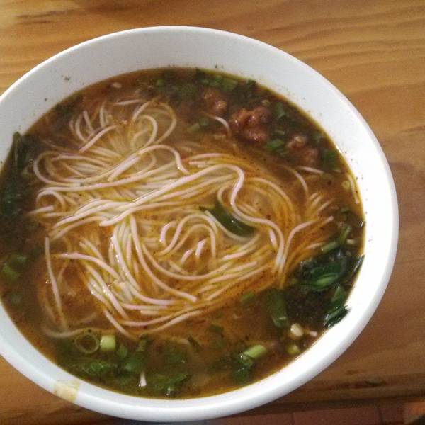 早饭,到翰林街,在LP上介绍的花园小吃吃了肠旺米线,米线加大肠、炸肉、猪血,10元一大碗,味道举世无双。 至今还十分想念。