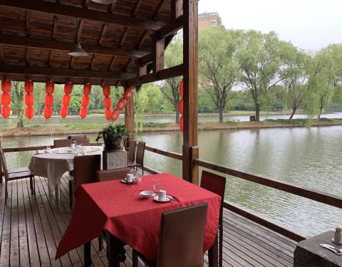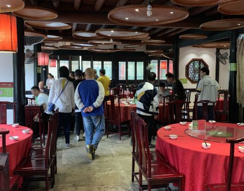 绍兴有很多河,水道纵横交错,古色古香的饭店前有大片绿地,大厅吃饭窗外就是湖景,碧波荡漾,绿意盎然,有兴趣还能坐在湖边户外品尝美味。口味还不错,量也足,适合旅行中团队用餐。