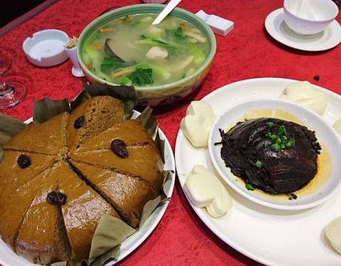 酒家在古运河边上,仿古建筑,环境总体来说不错,菜品而言,都是些绍兴本地菜为主,看有推荐的梅菜扣肉就来了一份,结果口感不是很好,估计已经蒸了好几天,五花肉都很干了,不好吃,野生菌菇汤偏咸。总的来说环境不错,菜的口味一般,性价比不高。