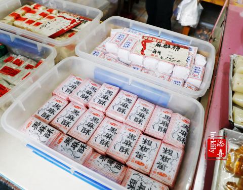 ◇◇◇在路边不起眼处,冷色的白炽灯下寻到了计划中售卖当地特色甜食的食品店,看起来像是老式的糕点铺,此行为了绍兴甜点“奶油小攀”而来。
