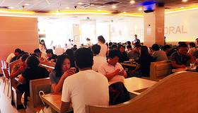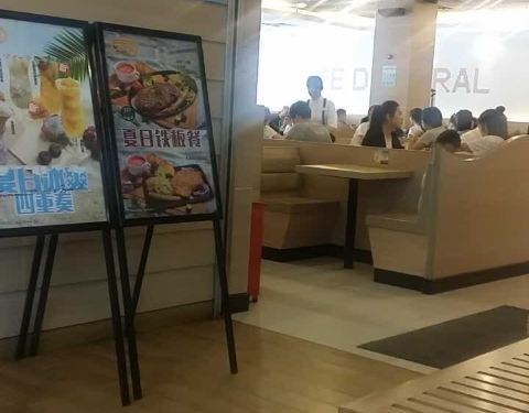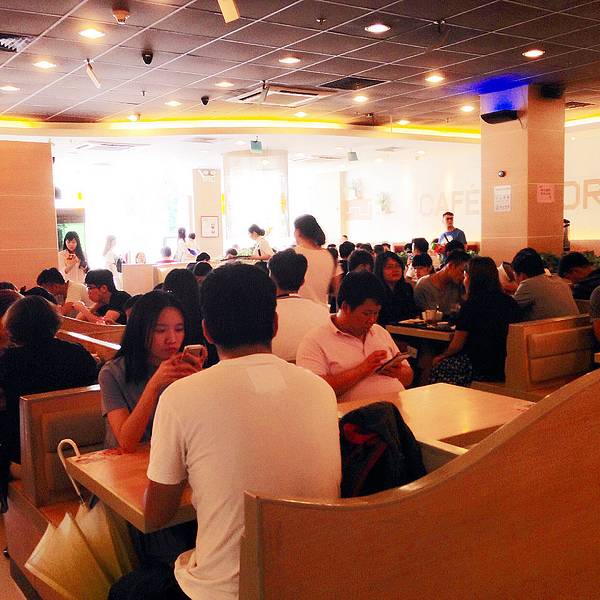 ...时分去的,来这里吃饭的人非常多,不仅里面的大厅全部坐满,就连靠近商场内侧的竖形走道也是人满为患