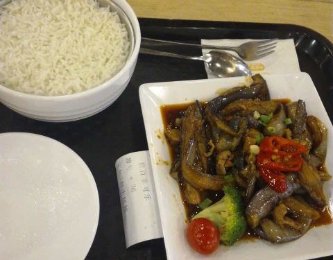 简介:大家乐是目前全球最大的中式快餐连锁店之一,店面遍及港澳、美国和加拿大等地。十分受欢迎。地理位置和交通:肇庆的这一家分店位于凯德广场一层,与caffe bene相邻。可以在市内乘坐8路、10路、21路等公交车到广场斜对面的牌坊东站下车,然后直走到粤运客运站,从客运站前的地下通道过去,就可以到达凯德广场。大家乐就在广场一层左边的转角处。体验:1、我们是中餐时分去的,来这里吃饭的人非常多,不仅里面的大厅全部坐满,就连靠近商场内侧的竖形走道也是人满为患。2、他家的招牌菜是猪扒饭、牛肉饭和鱼香茄子饭,还提供各种饮品和煲汤。猪排的分量很足,炸得也是外酥内嫩;茄子饭闻起来很香,就是稍微咸了点,牛肉滑腻,但分量真心有些少。至于配送的例汤,基本上真正是“清澈见底”了。3、服务方面,可能由于服务员人不多,吃饭的人又多,所以点餐和上菜都有些慢。好在有免费wifi可以用。4、饭菜的价格也不贵,多是30-50元一份,分量比较足。性价比还是比较高的。5、饭厅的布置以暖色为主,由于夏天放了窗帘遮阳,所以里面的光线不是很足。两侧为双人座,中间为四人座。有小走道隔开。