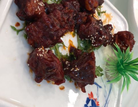 这是一家小有名气的苏帮菜馆,性价比高。铁板蒜蓉虾肉质饱满,蒜香四溢。酱香牛仔骨,浓油赤酱,牛肉比较嫩,调味做得也很到位。
