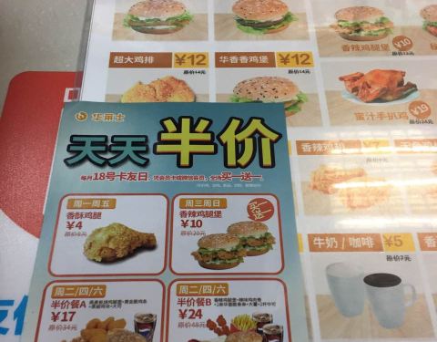 每个星期三都有优惠,很多人哦,比肯德基便宜又好吃,宝宝爱吃,经常来哦,