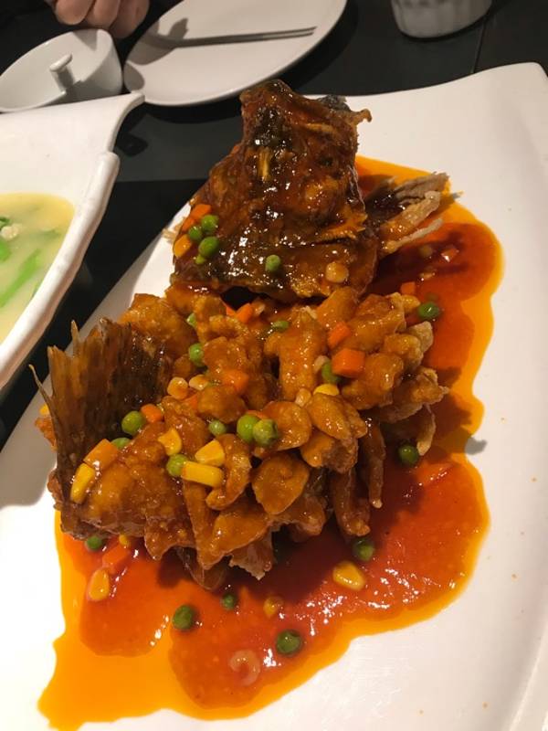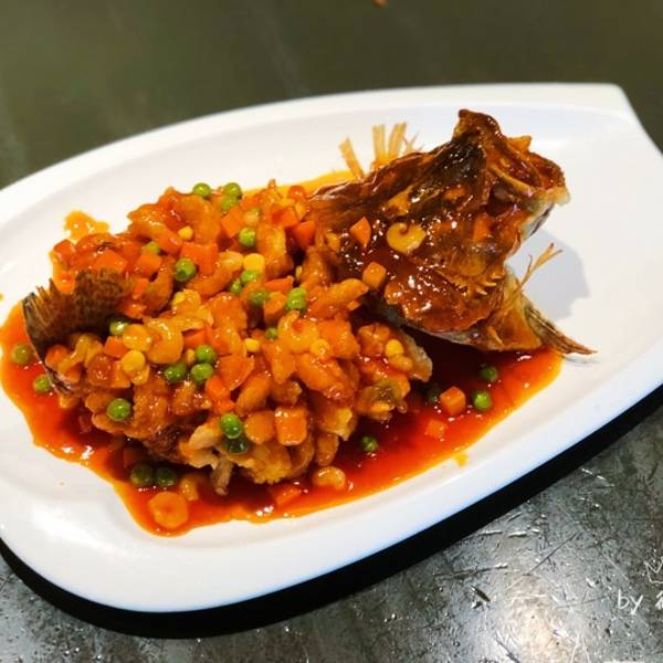 松鼠桂鱼 松鼠桂鱼酥脆好看,酸甜可口,鱼肉细嫩,以虾仁、青豆、玉米做点缀,喜欢酸甜口味的可以点,感觉比松某老字号做得美味。