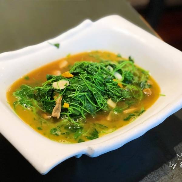 蚌肉金花菜 最近很喜欢的一道菜,这家做得不错。蚌肉新鲜,虽然略有点老,但金花菜的鲜嫩弥补了这一点。清爽又鲜美的一道菜。