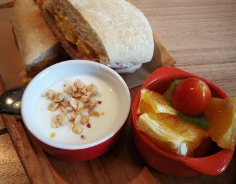 - ...~点了一份芝士帕尼尼~ 吃的饱饱的~ 虽然有点不安静~ 但是~有摩卡陪着~ 就这样吧……………