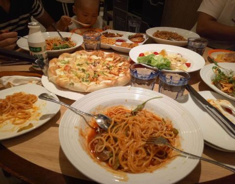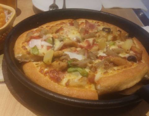 一个很古老的品牌,和肯德基麦当劳一样在国内遍地开花!档次属于中高档,披萨是招牌,其他拼食小盘,培根大虾也都非常不错,喜欢喝上一杯咖啡☕️小坐一会!