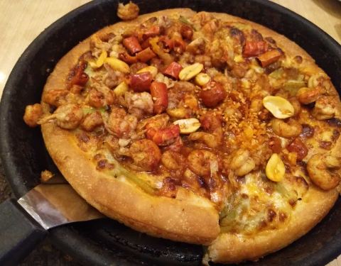 支付宝口碑有大牌半价活动,抢了个海鲜薯角薄脆半价披萨,原价73,现在36,觉得挺划算的,而且必胜客一向给我感觉挺好的,大品牌值得信赖。