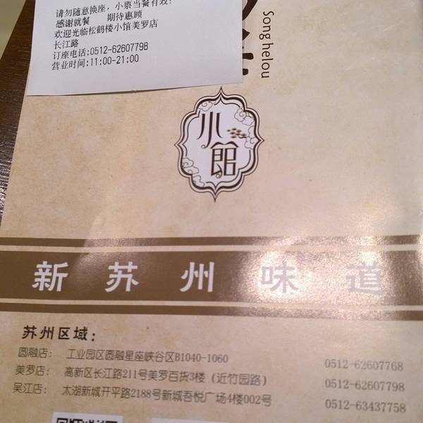 奥灶面 红烧鲃鱼 蟹粉豆腐 木瓜炖雪哈 素鸭 虾胶酿冬菇 红烧肉 生煎包 响油鳝糊 松鼠桂鱼 响油鳝丝 清炒虾仁 手剥河虾仁 酒酿圆子 拉糕 清炒河虾仁 太极白玉羹 凉拌海蜇 手拨虾仁 葱油拌面 鲍鱼捞饭 松鼠鳜鱼 绿叶樱桃肉 香菇虾仁 太湖二白
