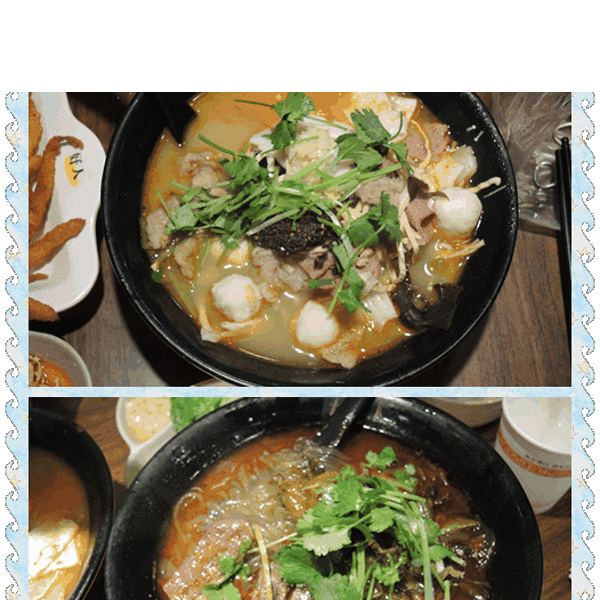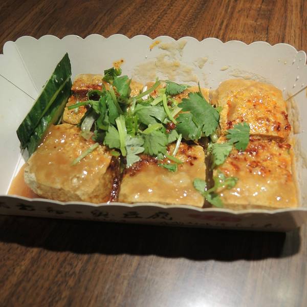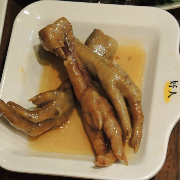 快到酒店时,雨又停了,刚想打个电话和亲人们联系一下晚餐的事宜,却接到喵喵打来的电话,询问紫檀一下午玩的怎么样,到哪里了?大家都等着他吃饭呢。这倒合适,他正好走累了,肚子也饿了,这也算是“犯困时... 快到酒店时,雨又停了,刚想打个电话和亲人们联系一下晚餐的事宜,却接到喵喵打来的电话,询问紫檀一下午玩的怎么样,到哪里了?大家都等着他吃饭呢。这倒合适,他正好走累了,肚子也饿了,这也算是“犯困时来枕头,太合适了”。先回房间草草地洗涮一番,换上干净鞋袜,大家一起吃晚饭去喽。 从离开北京到今天,快一个星期了,我们一直都是以江浙菜为主,那偏甜的菜肴还真的不太适应,尤其是在这个阴雨连绵的日子里,出了门就觉得阴冷阴冷的,浑身不得劲儿,就想吃口味道重一点的,最好是能驱寒的才给力呢!于是,不约而同地想到了川菜。观前街里走了一圈儿,找到了一家四川小吃店,名字很吸引人:好人民间小吃,看看店里的食客还不少,那就是它了。好人民间小吃店。我们商量点菜的工夫,姐夫出去,在隔壁买了一份臭豆腐。看盒子上的介绍,这还是一家老字号呢。这份臭豆腐果然地道,颜色金黄,外焦里嫩,调味咸鲜,真的是“闻着臭吃着香”呀!虾仁酥肉,没听说过川菜里还有这么一道呀,来一份尝尝吧。虾仁晶莹剔透,味道鲜美;酥肉滋润丰腴,微微有点油腻。水煮鱼,川菜里的名肴。鱼肉雪白细腻,可惜太淡了,俗话说“咸鱼淡肉”吗,咸味太少了,鱼肉的鲜美就提不出来了,有点可惜;酸菜的味道有点寡淡,感觉腌制的时间欠一点;此菜的味道太温柔了,麻辣味道聊胜于无,缺少了麻辣就仿佛缺少了灵魂,水煮鱼变成了“白水煮鱼”,幸亏鱼肉还算鲜美,我们就只当是没有吃川菜了。这道“汆鱼片儿”也算不错吧。烤羊腿——典型的新疆菜。为了犒劳紫檀一整天的奔波,姐姐特意点了一份烤羊腿。这羊腿真够袖珍的,看来是小乳羊的前腿吧。不过,烤制的火候有点大,羊肉里的水份几乎快要蒸发完了,肉质显得太硬了,一点都不像小乳羊的前腿儿。还好,味道很足,孜然给力,配着这极其筋道的腿肉,正好练牙口了!凤爪,这个还真挺好的,卤制的时间充分,卤汁调配的也好,肉质软糯,颇有胶质,赞一个。毛血旺和酸辣粉。这俩四川小吃的著名品种,到了苏州也有所“改良”,辣味和麻味都打了很大的“折扣”,没有在川渝两地品尝时的酣畅淋漓,过于平和的味道,倒让人感觉有些新奇。虽然平淡了,但比起苏帮菜的浓甜还是要更合我们的口味一些,也算是给我们的胃口来一次调剂和抚慰吧。炸鱿鱼和炸大虾。鱿鱼和大虾本来就很鲜美,经滚油炸过,香味浓郁,鲜美可口。凉菜:生菜蘸腐乳,洗净的生菜叶子佐之以南味的腐乳,口感鲜脆,腐乳味醇厚,别有风味!凉拌豆腐丝,红油香辣,下酒的好菜。凉拌木耳,家常小菜,中规中矩。我们的晚餐,这样的一大桌菜,几乎把“好人”店里的头牌菜品都点出来了,除了没有品尝到川菜麻辣的刺激过瘾,吃的也还算满意! 饭后,我们又在观前街溜达了一圈儿,看看夜景也消消食儿。路过星巴克,姐姐和喵喵自然不会放过,这次连两位男士也“被迫”各来了一杯饮品。星巴克的咖啡。
