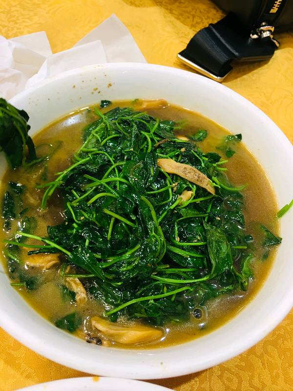 - 蚌肉金花菜 蚌肉有点不新鲜,金花菜满入味。一整条鱼被两个人吃了个精光。人气爆棚,就餐时段需要等位
