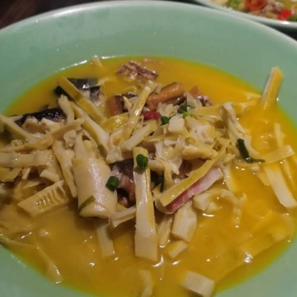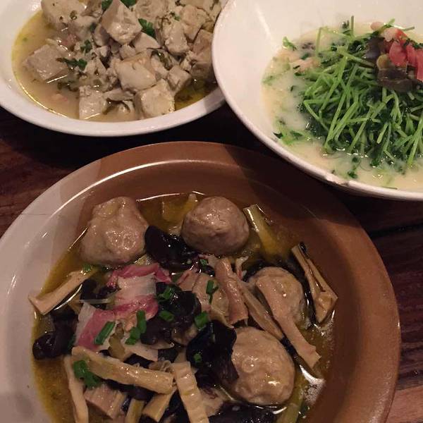 人流超多,布置的极具乡土气息,今天点了白水鱼、黄瓜苗、鳝背、猪油拌饭、葱油莼菜、蒸臭豆腐。总的来说,菜做的不错,环境也好,口味徧淡了些。