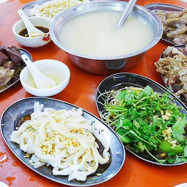 中午到了电白水东镇,当地朋友带我来了这间网红店,兴记鸭粥店,人气好旺,顾客满座,客流不息,店里菜品很简单,目测不超过十样,我们点了香油捞粉、白切鸭、水东芥菜、鸭血鸭杂,上菜那个飞快,都不用炒菜的,duang~duang ~鸭子是飞快被剁好,淋上酱油,撒上了芝麻;芥菜和豆芽都是一大盆过了开水,抓一把装盘,浇上特制的酱汁,搞定;捞粉也是一把抓,淋油撒蒜末就好;当当当,点完一分钟上齐,包括一个鸭粥……出品太快,味道不打折,客流量充分证明一切.白切鸭鸭血鸭杂水东芥菜,豆芽香油捞粉鸭粥一桌菜三分钟上齐