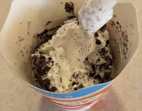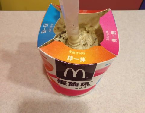 吃完了才看到,大杯冰淇淋加奥利奥,冰淇淋奶香细腻,奥利奥打碎了混合味道不错这就是麦旋风!