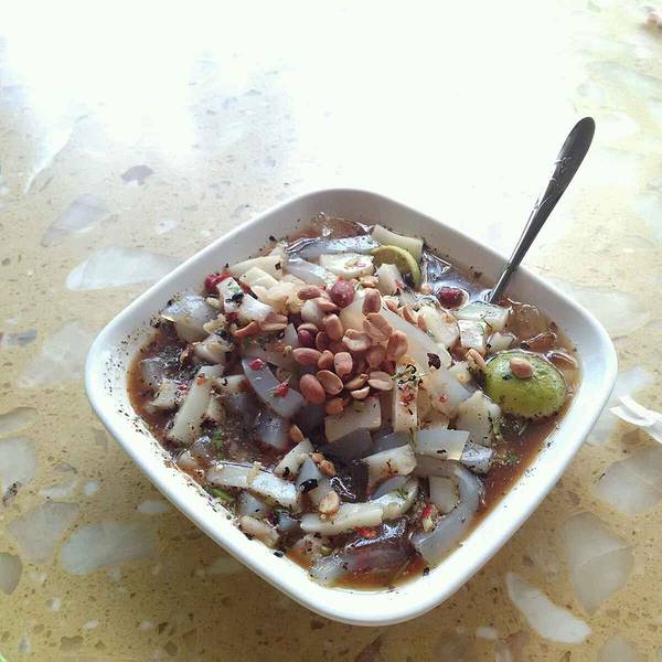 比如柠檬凉粉、啰啰特制刨冰、柠檬汁凉拌鸡脚筋、睡印椰、帕鲁达等,这些也是西双版纳有名的小吃