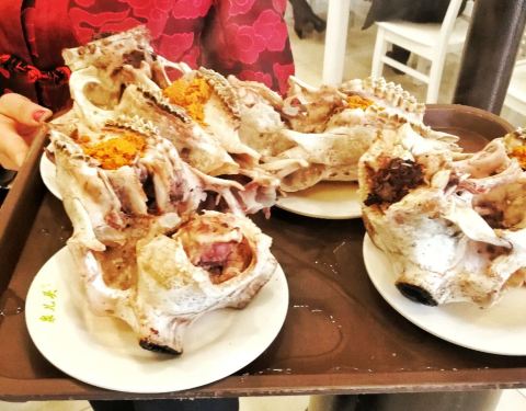 - 不过我们一行觉得挺好吃的,特别是羊脑卖相很赞,吃着蛮鲜,配的沾料碟很香